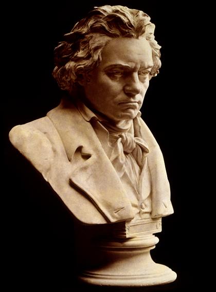 Ludwig van Beethoven, bust statue by Hugo Hagen We've mentioned that Beethoven learned much musically from his teachers. He also learned much from studying Bach's works, such as the 48 preludes and fugues, and it is interesting to see how Beethoven employed fugal writing himself within his symphonies as a form of development (see for example the slow movement of the 7th symphony again). However, although Beethoven had a number of musical influences, in some ways that is not the most important aspect of his creativity. Rather in many ways it was his own thoughts, feelings and ideology which he strove to commit to musical form, and it was this which singled Beethoven out as the first of the great Romantic composers. But his thoughts and ideology didn't arise out of nothing. Beethoven was influenced by other artists, writers, poets, politicians, philosophers and other great thinkers of the day. It was his own thoughts on these topics which more than anything seemed to drive Beethoven's creativity.