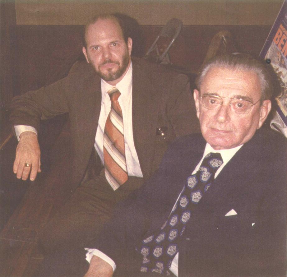 . . . During the intermission, I was talking with Dr. Rózsa. A grey-haired, distinguished-looking bespectacled man in a powder-blue blazer approached the composer and spoke with him about the concerto. The composer interrupted the gentleman for a moment, looked at me, and, pointing to the man, said to me, "Jeffrey, meet David Raksin."