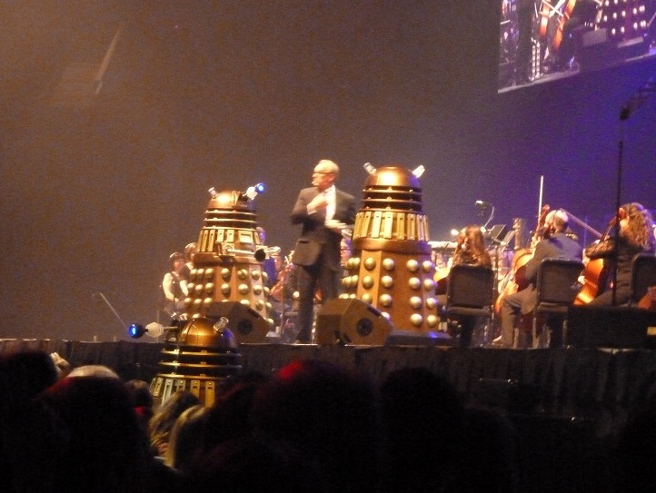 Of course a show like this aiming for a family audience could never be just an audio experience. Doctor Who Music has a strong connection to characters and events in the TV series, hence the visuals are equally important in makng that connection. So while the music plays Suites or extended tracks from the Doctor Who soundtracks, the large screens carry a montage of clips from the TV show. These are not synchronised as in the original episodes but enough to provide that connection with highlights from the past 10 years (and occasionally earlier times) of the series. And then there are the monsters! Daleks, Cybermen, Silurians and Dream Crabs all made an appearence as did Vampires (from Venice), Ood, Ice Warriors, Whispermen, Silents, the Teller from "Time Heist" and the Mummy from the Orient Express in "66 Seconds".