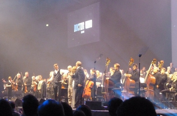 The sad fact is that the 2015 UK Tour has now finished, but not before Music Files was able to visit the last show of the tour in Glasgow on 29th May. But we're sure that the show will return sometime, somewhere in the not too distant future. This UK tour was presented by 5th Doctor Peter Davison, and of course featured Ben Foster conducting the BBC National Orchestra and Chorus of Wales. Foster has been with the show almost as long as Murray Gold, orchestrating and conducting the orchestra for the series' episodes and of course on the soundtrack CDs. There was some banter between presenter and conductor throughout the show, keeping the tone lighthearted and family friendly but also playing to the fans with frequent comments suggesting a rivalry between Peter Davison and 6th Doctor Colin Baker. We're sure this rivalry is purely fictional, but it adds a nice element of fun to the show, as did references to Davison's 50th anniversary video special "The Five(ish) Doctors Reboot" and the family relationship with Davison's son-in-law David Tennant.