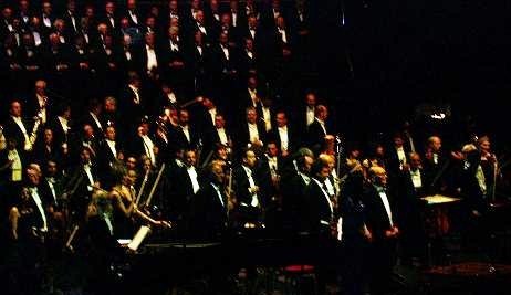The final programmed part of the concert consisted of three tracks from The Mission starting with the sublimely beautiful "Gabriel's Oboe" which allowed yet another member of the woodwind section (Carlo Romano on Oboe) to shine with a solo part. Then the "Falls" (with its breathy bass flute) and "On Earth As It Is In Heaven" where the counterpoint of choir, orchestra and drums interweave threads of Nature and Culture and Religious ideals, bringing together seemingly incompatible elements in a glorious climax.
